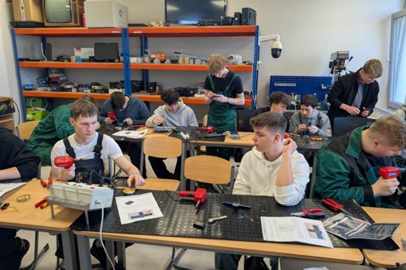 Wspólnie z uczniami technikum elektrycznego realizującymi zajęcia praktyczne w Centrum Kształcenia Branżowego młodzież pracowała w oparciu o podstawę programową zawodu elektryk. Język zawodu, nauki i schematów okazał się zrozumiały i przystępny dla wszystkich uczestników.